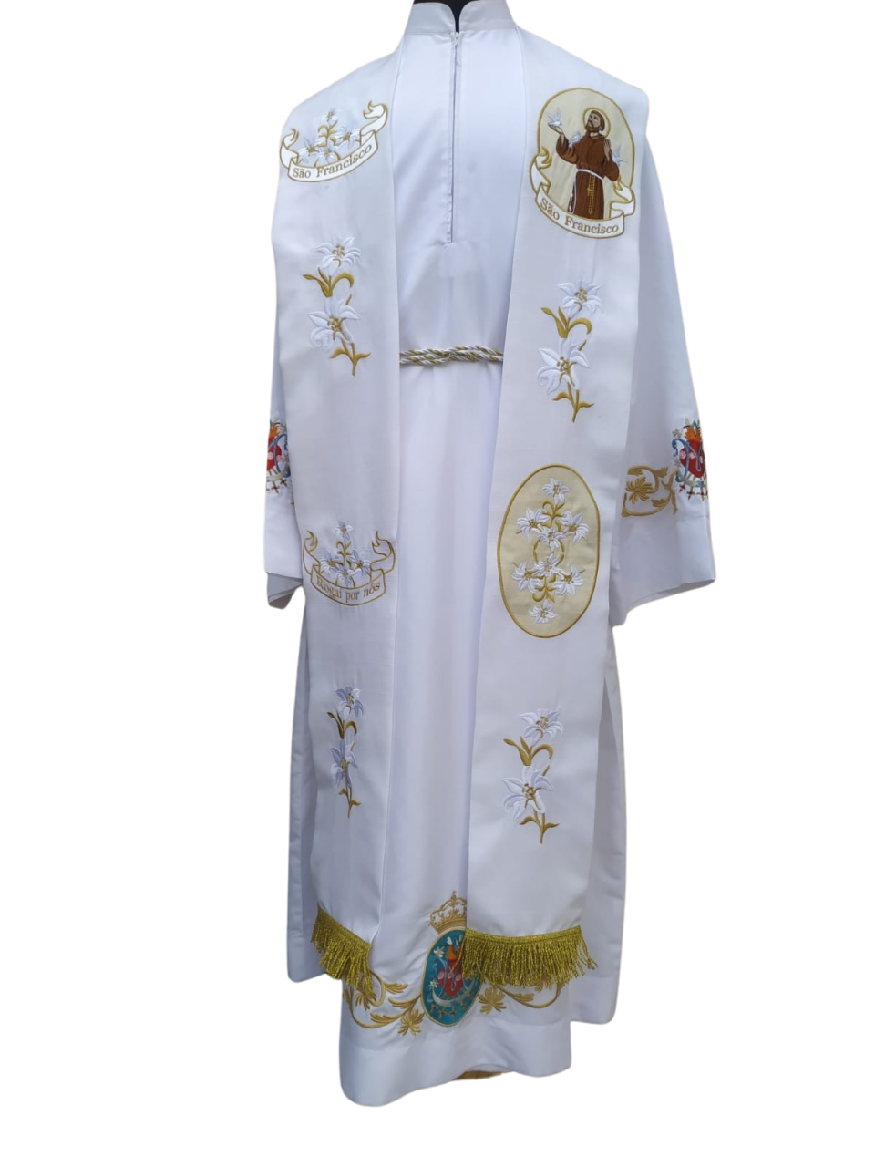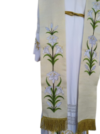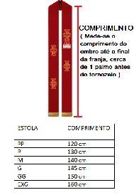 Estola podendo ser confeccionada em: linhão / oxford / adamascado ou brocado.